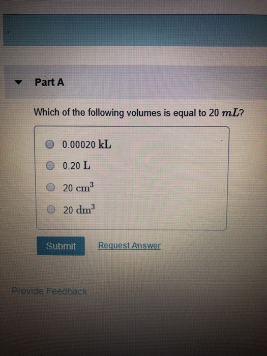 16 250 L Is Equal To A 250 Cm3 B 2 5 X 103 Ml C Chegg Com