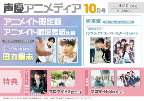 雑誌 声優アニメディア 21年10月号 アニメイト限定版 アニメイト限定表紙仕様 アニメイト